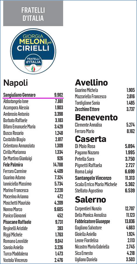 Gennaro Sangiuliano (Fratelli d’Italia, Napoli) 9.902