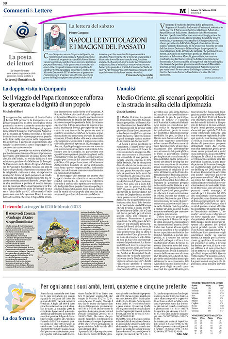 Mattino, la pagina 38 del 21 febbraio …