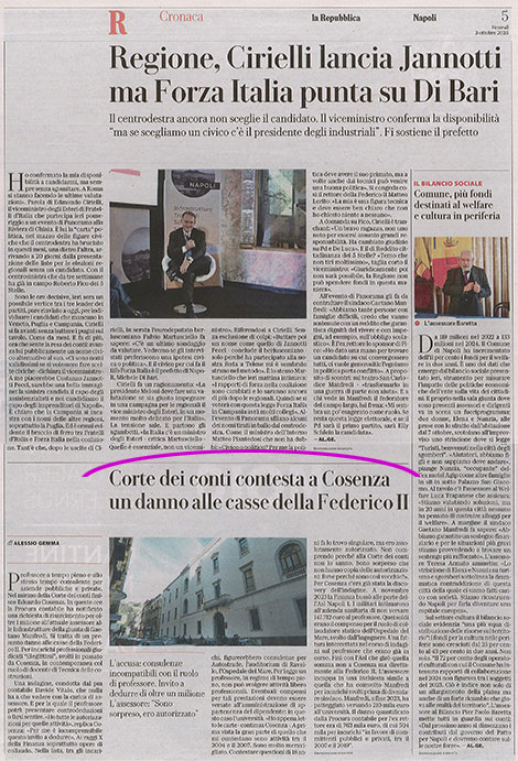 La pagina 5 di Repubblica Napoli del 3 ottobre …