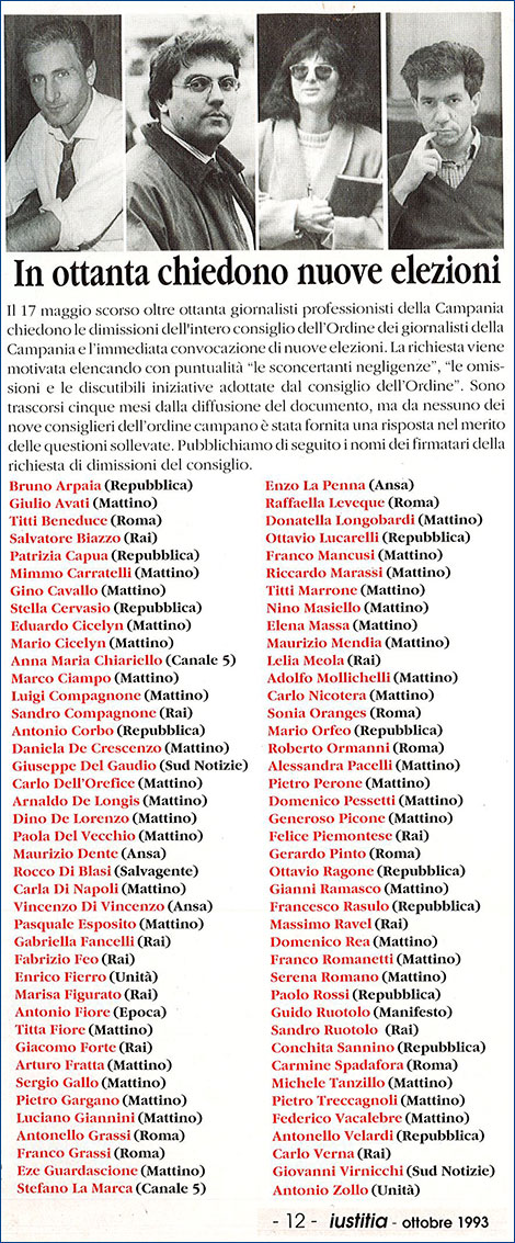 Da ‘iustitia’, il periodico cartaceo del movimento politico la Rete, dell’ottobre 1993