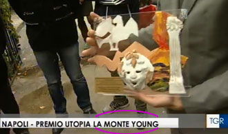 Passano pochi giorni e il 5 novembre, nell’edizione del tg delle 14, la conduttrice Annalisa Angelone legge un testo mentre scorrono le immagini del premio ‘Utopia Lamont Young’ assegnato tra gli altri al cardinale Crescenzio Sepe. E sapete quale è stato il sottopancia messo in onda dallo straordinario squadrone Rai: ‘Napoli-Premio Utopia La Monte Young’. In uscita dal servizio non sono arrivate né le scuse, né la correzione, come sarebbe accaduto non soltanto alla Bbc, ma anche al TGLa7 diretto da Enrico Mentana o al telegiornale di Canale 21 guidato da Gianni Ambrosino.