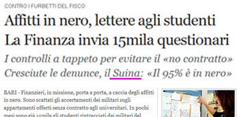 l'errore contenuto nel sommario dell’articolo pubblicato il 4 marzo sul sito web del Corriere del Mezzogiorno (guidato da Nino Femiani, ndr) è troppo divertente per non mandarglielo. Il Sunia, sindacato degli inquilini, si trasforma in Suina, come l'influenza. Cordiali saluti.